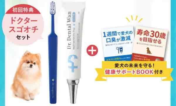 また今なら初回特典としてドクタースゴオチ(専用ハブラシ1,480円)が1本、および健康サポートBook、歯磨き克服動画がプレゼントされ超お得!