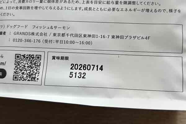 さらにパッケージ裏の下段には賞味期限が記載されています。