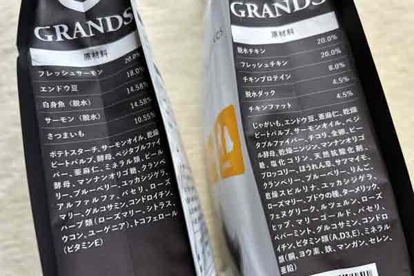 グランツは「フィッシュ&サーモン」と「チキン&ダック」の2種類があるため、1種類に固定せずローテーションすることで、より続けやすくなるという考え方もあります。