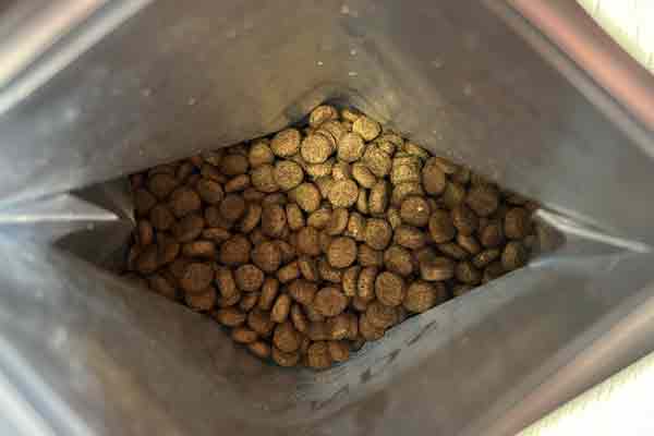 開封すると、このような小粒のフードが確認できます。パッケージの開口部にはジッパーがありますので、開封後の密閉も確実です。
