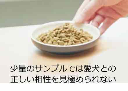例えば、大手メーカーで準備されているような100グラムほどの「お試しサンプル試供品」では、正確な相性は確認できないのです。