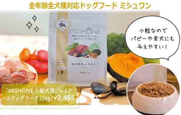 ミシュワンは主原料に国産チキンなどを使い、保存料・着色料・香料などの危険な人口添加物を排除しているため、デリケートな子犬の負担を軽減しています。