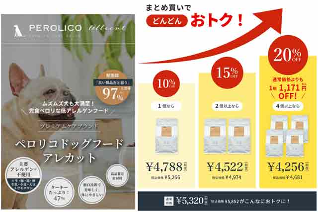 ペロリコドッグフード アレカットの最安値は楽天やAmazonではなく公式