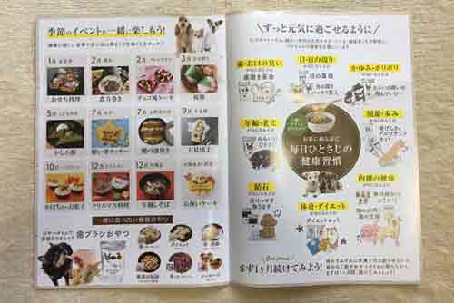 ドッグダイナーのカタログにはワンちゃんと季節を楽しむイベントカレンダーなど読み物もあります。