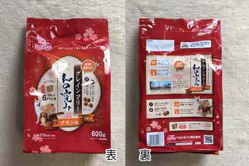 和の極みグレインフリーの外袋は、裏面に特徴・原材料の解説など説明が記載されます。